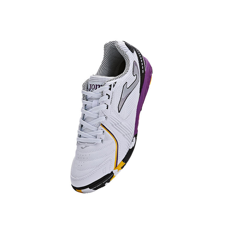 五人制足球鞋。這雙五人制足球鞋採用耐磨材料製成,適用於石地/室内足球場。有了這對多功能鞋,任何地方都可以成為五人制足球場。透氣性、穩定性和阻力是合成材料與製成鞋面的網眼網格完美結合的結果。此外,被稱為 VTS 的小穿孔被添加到鞋面,以幫助排汗,讓足球運動員的腳保持涼爽和乾燥。鞋帶的 PERFECT FIT 技術有利於更好的支撐,使其完美貼合腳部。在鞋頭上,它們有一個 PROTECTION 部件,可以提高保護並增强擊球力。鞋底由非常優質的 DURABILITY 橡膠製成,耐磨損。此外,得益於便於轉彎的 ROTATION 結構和提供無與倫比的靈活性的 FLEXO 線條,足部的自然運動得到保證。