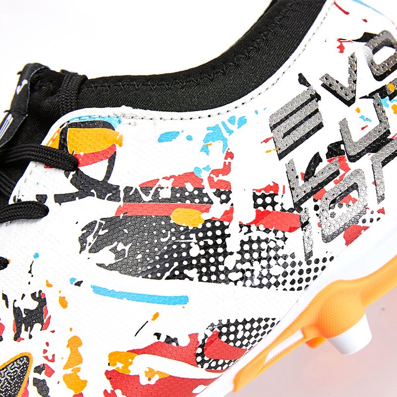 EVOLUTION 適合天然草球場。 Evolution 模型的延續已經發展到最新的技術。 鞋面無縫剪裁縫和襪子系統的結合徹底改變了以前的設計。這足球鞋結合了速度、控制力和精準度。鞋面由無縫合成材料製成,採用 ONE PIECE 技術一體成型。這種特性為靴子帶來了輕盈感。他們還採用了 SOCK SYSTEM 襪子系統,通過將鞋子的結構固定在腳上,再次提供輕盈感並優化貼合度。在鞋跟處,它們有 EXO COUNTER 鞋跟加固,可保護該區域並提供穩定性。鞋底由優質合成材料製成,具有良好的耐磨性。適應地形類型,以更好地控制天然草球場上的控制和運動。它們有一個額外的螺柱結構,可以更好地分配重量並便於抓握。它們還以現代有趣的設計脫穎而出,這使它們成為時尚人士的理想選擇。